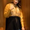Capa feminino quadrada, modelagem ampla e reta com detalhes em pele fake na parte frontal.