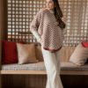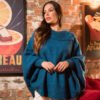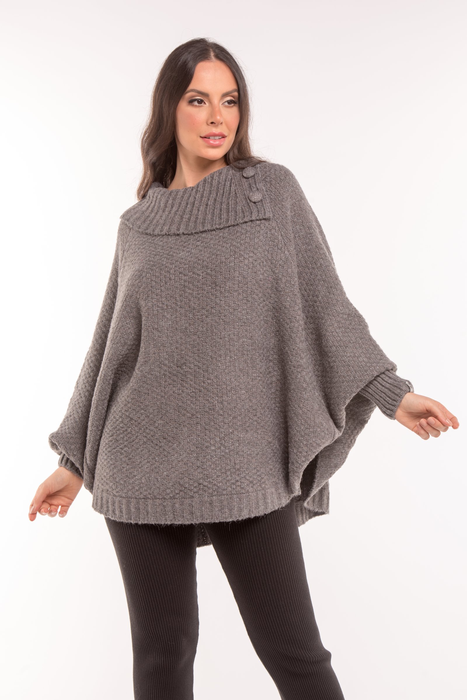 Capa ampla feminina com modelagem ampla com detalhe na gola botão forrado.