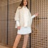 Capa com modelagem ampla, com fechamento na lateral e gola em pele fake removível.